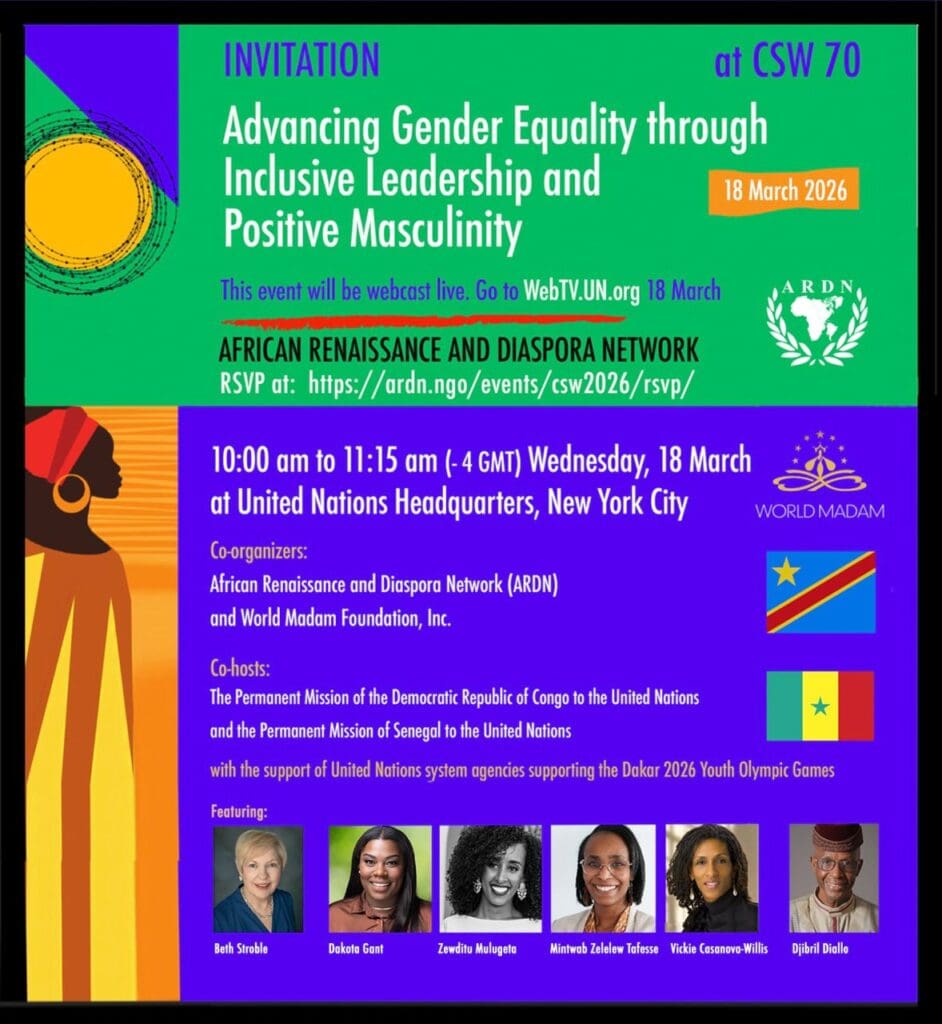 During the 70th session of the Commission on the Status of Women (CSW70), the African Renaissance and Diaspora Network, in partnership with the World Madam Foundation, convened a widely attended side event at United Nations Headquarters in New York on March 18.